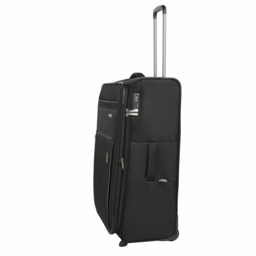Elegantní textilní kufr na dvou kolečkách vybavený expandérem.