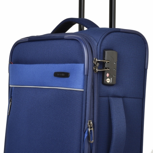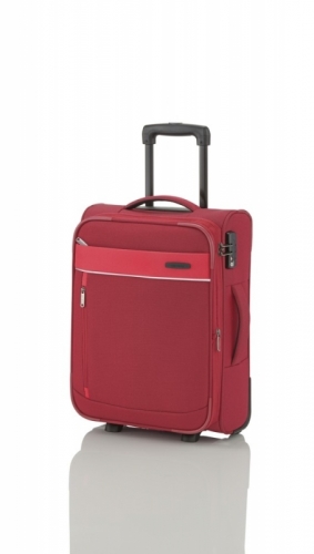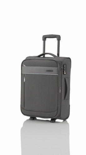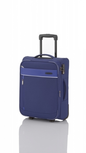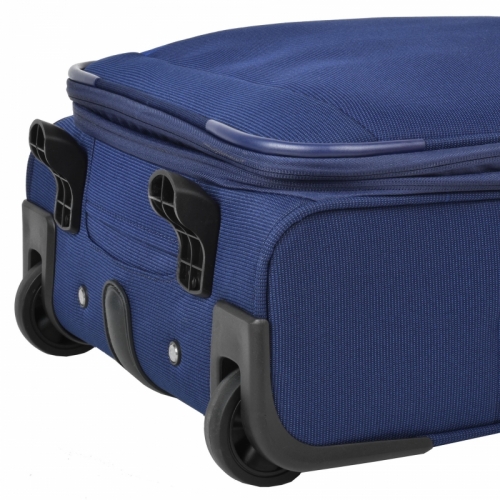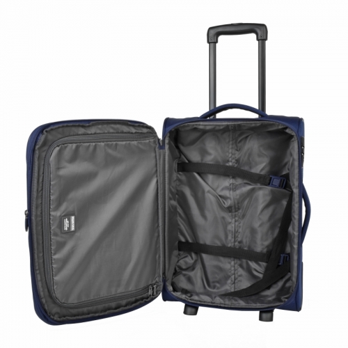 Textilní palubní kufr na dvou kolečkách vybavený expandérem.