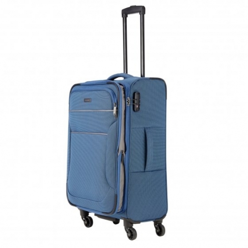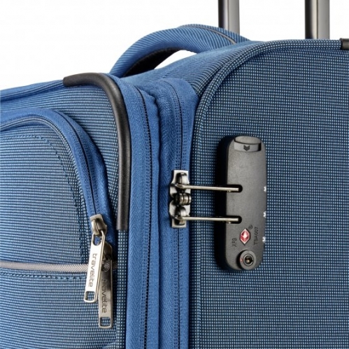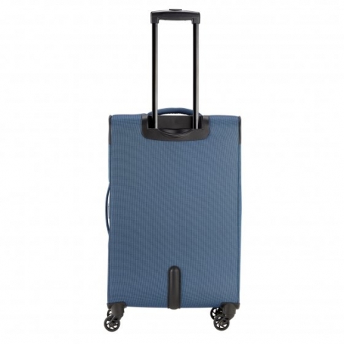 Textilní kufr na čtyřech kolečkách v nadčasovém designu vybavený integrovaným TSA zámkem a expandérem.