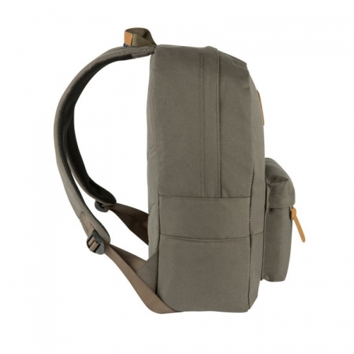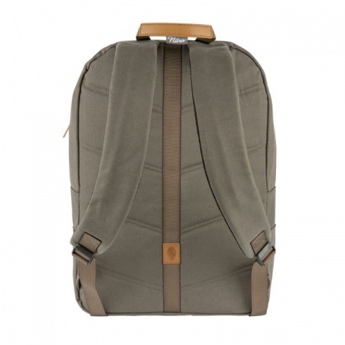 Objem 20 l. Batoh s pohodlnými polstrovanými popruhy, přední kapsou na zip, polstrovanou kapsou na 15" notebook a doplňky z veganské kůže.
