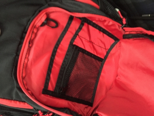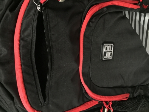 Batoh má kromě hlavní a přední komory také 2 boční kapsy ze síťoviny, přední kapsu na drobnosti a kapsu např. na tablet nebo elektroniku.
