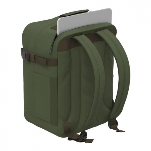 Palubní batoh pro nízkonákladové cestování vybavený polstrovanou přihrádkou na notebook.