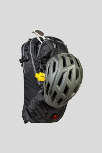 Cennosti naopak uschováte do přední či boční kapsy na zip. Batoh lze rozepnutím obvodového zipu objemově zvětšit o 3 litry. Součástí je integrovaná pláštěnka s reflexními prvky a 1l vodní vak, který je vložený do vnitřní kapsy s vývodem v horní části zad. Úchyt na blikačku a helmu oceníte během cyklovýletů.