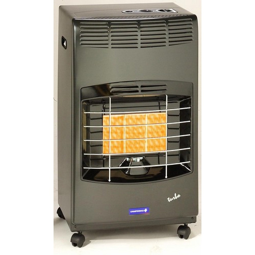 Mobilní plynová kamna na kolečkách, 3 stupně výhřevu a ventilátor pro rychlý ohřev místnosti.