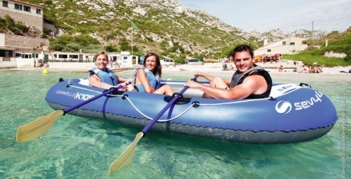 Nafukovací člun pro rodinou rekreaci. Počet osob: 3 dospělí.