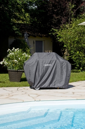Univerzální obal na gril z odolného materiálu a ošetřený PU zátěrem pro zvýšenou voděodolnost. Spodní elastická manžeta pomáhá lepšímu krytí grilu.Vhodné na grily 3 Series, 4 Series, C-LINE 2400, Genesco 4.