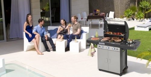Kontaktní plynový gril se třemi trubkovými hořáky z nerezu a postranním hořákem například pro přípravu omáček a příloh. Grilovací plocha je rozdělená na litinový tál a rošt Culinary Modular pro snadnou přípravu pizzy, marinované drůbeže, paelly či asijských pokrmů na pánvi wok. InstaClean™ systém umožňuje vyjmutí jednotlivých dílů grilovací vany a jejich umývání v myčce. Pomocí ovládacích knoflíků a teploměru lze pohodlně regulovat teplotu. Obsahuje přední dvířka a úložný prostor. Piezo zapalování. Vyklápěcí rošt pro pozvolné grilování a ohřívání. 2 boční stolky, z toho jeden sklopný.