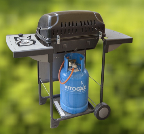 Pomocí ovládacích knoflíků lze pohodlně regulovat teplotu. Teploměr a okénko ve víku pro sledování pokrmů. Jeden postranní kovový stolek, místo druhého postranního stolku navíc vařič pro přípravu omáček a příloh, výkon 2,3 kW, spotřeba 170 g/h.