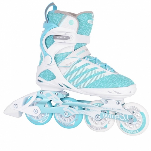 Kolečkové brusle WIRE LADY 3.0 jsou určeny pro rekreační, sportovní fitness a kondiční bruslení, snesou střední až vysokou zátěž a jsou určeny jak pro začínající, tak pro pokročilé a zkušené bruslaře. Skelet brusle je středně vysoký, pohyblivá část nad kloubem je zpevněná a tvořená dvěmi oddělenými částmi. Vnitřní liner je speciálně upravený pro dámské chodidlo. Brusle jsou osazeny kolečky ze serie CATCH, které se vyznačují malým valivým odporem. Tvrdost kolečka je 85A. Šněrování je klasické tkaničkami. Přes nárt je umístěn zpevňující pásek na suchý zip.