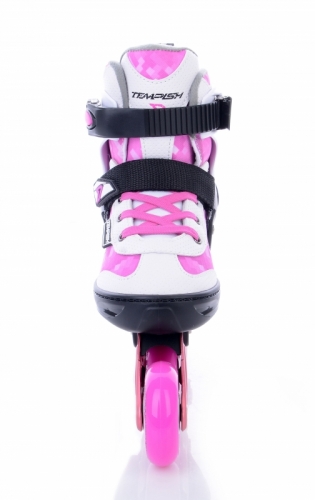 DASTY GIRL dívčí roztahovací brusle, určené pro rekreační a kondiční bruslení. Střední a vysoká zátěž, začínající i pokročilí bruslaři. Brusle mají jednoduchý a pohodlný systém zvětšení velikosti tlačítkem na boční straně skeletu. Brusli lze nastavit na 4 velikosti. Jedná se o velice kvalitní dětskou brusli jak designem tak i konstrukcí skeletu a podvozku. K bruslím dodáváme zdarma inbusový klíč.
