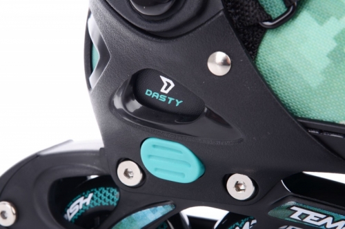 DASTY chlapecké roztahovací brusle, určené pro rekreační a kondiční bruslení. Střední a vysoká zátěž, začínající i pokročilí bruslaři. Brusle mají jednoduchý a pohodlný systém zvětšení velikosti tlačítkem na boční straně skeletu. Brusli lze nastavit na 4 velikosti. Jedná se o velice kvalitní dětskou brusli jak designem tak i konstrukcí skeletu a podvozku. K bruslím dodáváme zdarma inbusový klíč.