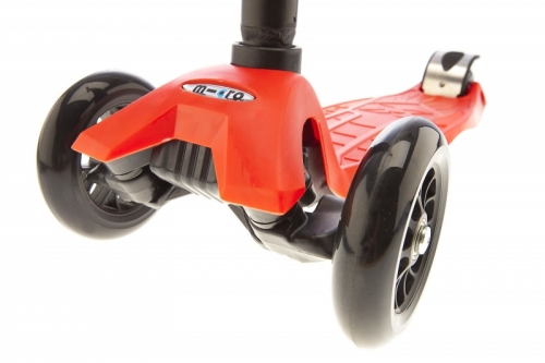 Stejně jako u trojkolky Mini Micro je jedinečnost této koloběžky v jednoduchému speciálnímu mechanismu, který nakloněním řídící tyče a přenesením váhy zatáčí.