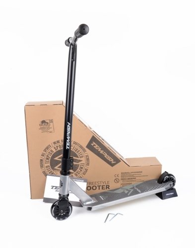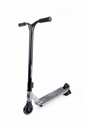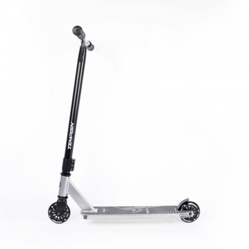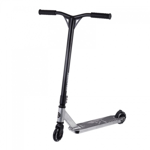 Koloběžka VENTUS 100 je určená k freestylu, je osazena kolečky o průměru 100 mm, tvrdost 85A. Hlavové složení: závitové. Kompresní systém: závitový + 3 šroubová objímka. Na vyztužených řídítkách z kvalitní slitiny hliníku o rozměru 580 x 500 mm (22,8” x 19,7”) se nachází 120 mm gripy z TPR. Deska je dvou profilová. Vidlice je ocelová.