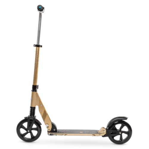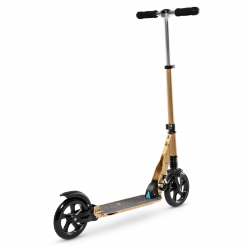 Micro Suspension Bronze je unikátní celoodpružená skládací koloběžka v bronzové barvě s pevnými kolečky o průměru 200 mm.