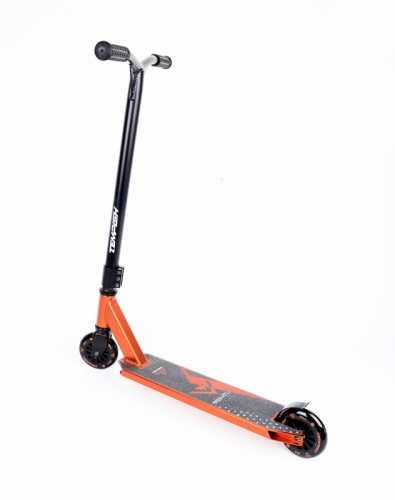 Koloběžka VENTUS 110 je určená k freestylu, je osazena kolečky o průměru 110 mm, tvrdost 85A. Hlavové složení: závitové. Kompresní systém: závitový + 3 šroubová objímka. Na vyztužených řídítkách z kvalitní slitiny hliníku o rozměru 580 x 500 mm (22,8” x 19,7”) se nachází 120 mm gripy z TPR. Deska je dvou profilová. Vidlice je ocelová.