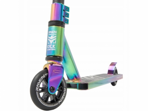 Koloběžka Raven Evolution Series byla vytvořena jako vysoce výkonný model pro freestyle jízdu. Použití vhodných hliníkových slitin a oceli umožnilo zajistit neobvyklou tuhost a odolnost konstrukce při zachování nízké hmotnosti. Řidítka z uhlíkové oceli umožňuje volně provádět různé, i ty nejobtížnější triky dynamickou agresivní jízdu.