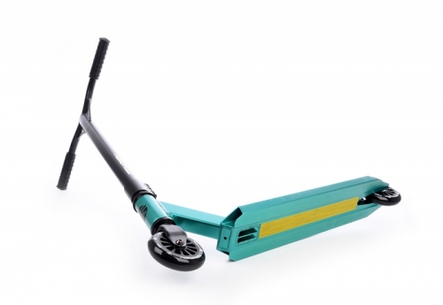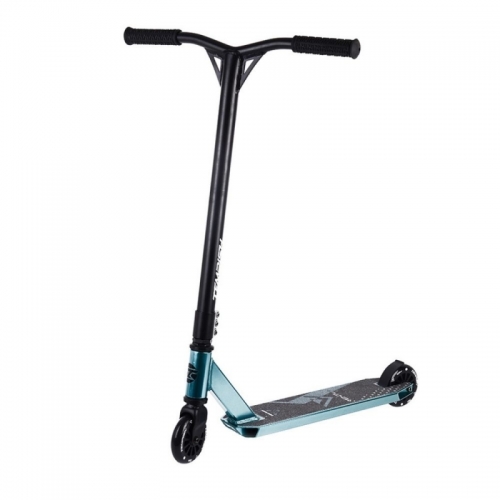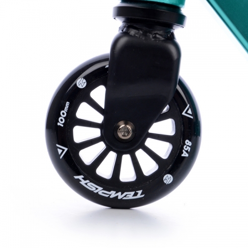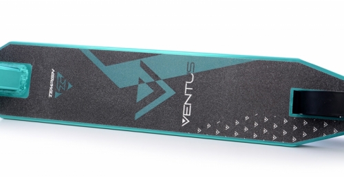 Koloběžka VENTUS 100 je určená k freestylu, je osazena kolečky o průměru 100 mm, tvrdost 85A. Hlavové složení: závitové. Kompresní systém: závitový + 3 šroubová objímka. Na vyztužených řídítkách z kvalitní slitiny hliníku o rozměru 580 x 500 mm (22,8” x 19,7”) se nachází 120 mm gripy z TPR. Deska je dvou profilová. Vidlice je ocelová.