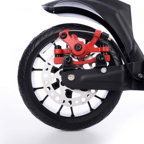 Zadní kolo je brzděno velmi účinnou kotoučovou brzdou, která se ovládá pravou rukou. Vzdálenost brzdové páčky od rukojeti lze nastavit dle velikosti dlaně a prstů uživatele – vhodné také pro děti.
