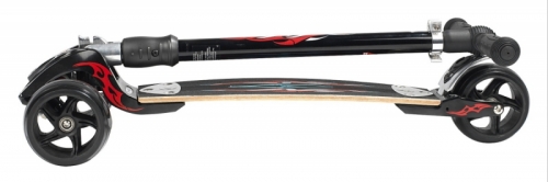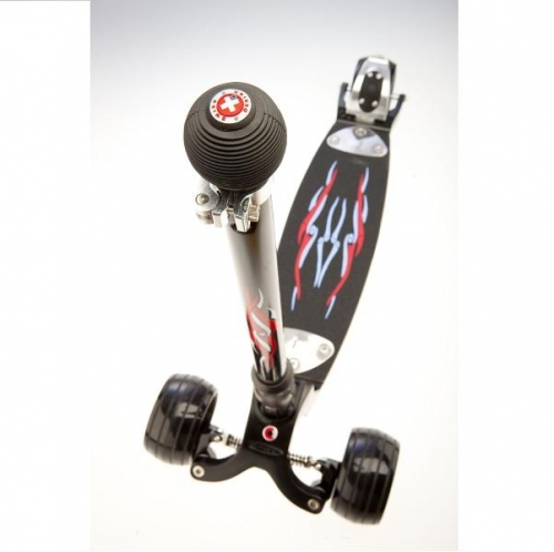 Kickboard Monster je osazen jedinečnou pružnou deskou, která dává kickboardu vynikající jízdní vlastnosti při dynamické jízdě a zároveň působí jako odpružení od vibrací z hrubého pevného povrchu.