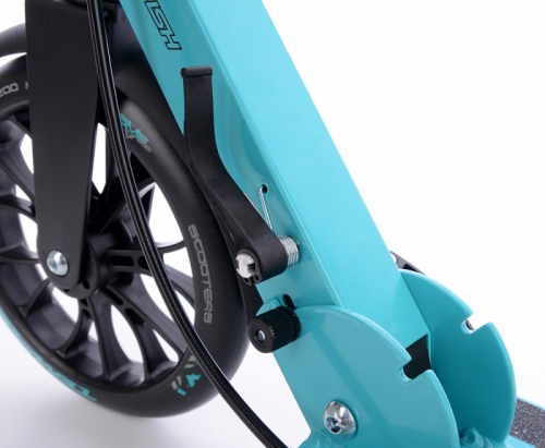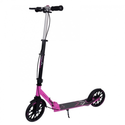 Skládací koloběžka TEMPISH SMF 200 s ruční brzdou. Zadní kolo je brzděno brzdou, která se ovládá pravou rukou na řídítkách. Pohodlný sklápěcí systém. Rukojeti jsou zajištěny velmi pevně velkou svorkou přímo na tyči řízení. Na rukojetích jsou pěnové gripy. Řídítka je možno výškově nastavit a zajistit rychlospojkou. Základní nášlapná deska je snížená pro pohodlné odrážení a delší odraz. Koloběžku lze také přibržďovat pevným blatníkem/brzdou zadního kola. Pro odstavení je koloběžka vybavena sklápěcím stojánkem.
