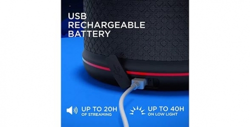 Využijete ji v kempu, na chatě či na venkovní párty, kde není zdroj elektřiny. Dobíjení prostřednictvím USB kabelu je rychlé a pohodlné. Voděodolná podle normy IPX4.  Počet světelných módů: 3 (high-medium-low).