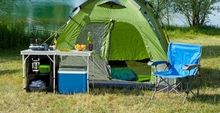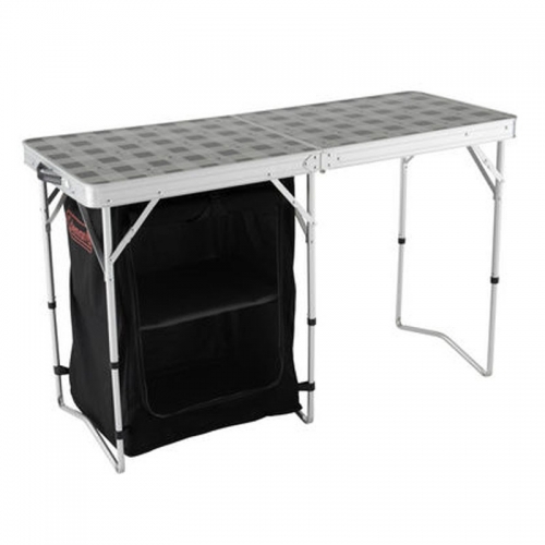 Skladný kempovací stolek 2in1 Camp Table & Storage disponující úložným prostorem s poličkami je ideálním doplňkem vašeho rodinného stanu.