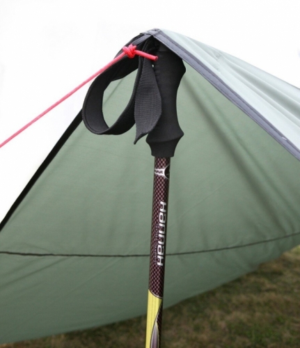 Větší ultralehký přístřešek vynikající jednoduchostí, výjimečnou lehkostí a pozoruhodnou variabilitou. Pro volné zavěšení v přírodě. Obsahuje 8 vypínacích popruhů a 2 kovová oka vhodná k uchycení trekových holí nebo tyčí (nejsou součástí balení).