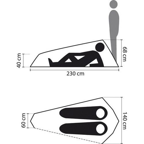 Půdorys Rigelu odpovídá přesně 2 samonafukovacím karimatkám Coleman Lite Mat.