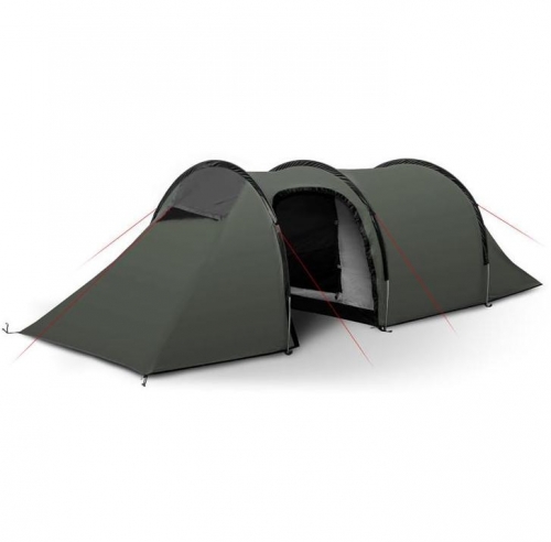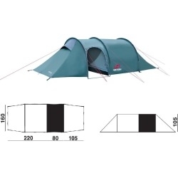 Stabilní, spolehlivý lehký stan tunel s velkou předsíní, do každého počasí s vynikajícím poměrem mezi hmotností a prostorem. Detaily: konstrukce ze 3 prutů/ 2 vchody/ 1 nadstandardně prostorná předsíň/ větrací otvory chráněné proti zatékání.