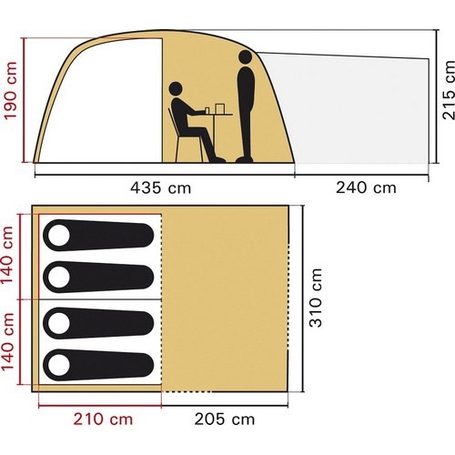 Velký a pohodlný kempový stan pro 4 osoby, který se díky tunelové koncepci staví rychleji, než by odhadoval i ten největší optimista.