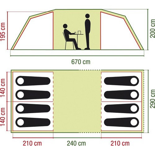 Opravdu nadstandardně dimenzovaný tunelový stan až pro 8 osob poskytne pohodlí domova.
