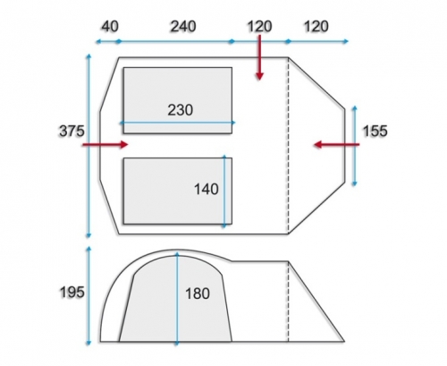 | Vnější stan | 100% polyester, vodní sloupec 2000 mm |