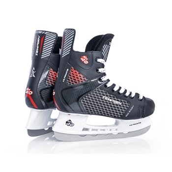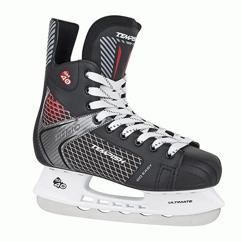 Hokejová brusle speciálně vyvinuta pro hráče středních soutěží, výkonnostní a amatérský sport. Konstrukce brusle dobře snáší i vyšší pravidelnou zátěž a je přizpůsobena nárokům aktivních hráčů. Hokejová komplet je osazen bruslí TEMPISH AIR. Břit brusle má větší kolébku a je vhodnější pro technické hráče, kteří upřednostňují rychlejší a snadnější ovladatelnost brusle s dynamičtějším pohybem při hře ! Extrémně anatomický tvar skořepiny a výztuh boty v oblasti kotníků a Achillovy šlachy s použitou bandáží s pamětí CLEERON 013S a CLEERON MEMORY ve dvou vrstvách se ochotně přizpůsobí tvaru chodidla a zajistí pohodlný pocit při hře s vysokou úrovní ovládání brusle. Vyztužený a anatomicky tvarovaný jazyk chráni dostatečně chodidlo hráče a nijak jej neomezuje v pohybu. Vysokopevnostní tkaničky jsou odolné proti opotřebení otěrem a umožňují dotažení skeletu boty k chodidlu dle individuálních požadavků každého hráče. Pevnost celého kompletu zvyšuje tenká podešev z extra tvrdého a houževnatého nylonu.
