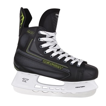 Hokejová brusle určena pro hráče středních a nižších soutěží, hobby hokej a rekreační sport. Vnější materiál je speciální resistentní PVC (Edmont-Flex) odolné vůči absorpci vody a zachovávající si houževnatost do teploty -25°C, výborně kopírující skelet boty. Technický, fine-micro nylon s potiskem. Nové technologie v konstrukci boty zajistí přizpůsobení boty tvaru chodidla. Sendvičová konstrukce s využitím technologie LAYERS MEMORY OPTIMAL FIT zajišťující stabilní polohu nohy v botě. Nová konstrukce plastové výztuhy špičky z materiálu STATIC PU, vnitřní bezešvé napojení na výstelku boty. Bota má anatomicky tvarovaný kotník, chráněný plastovou výztuhou proti úderům od puku nebo hokejových holí. Dvoudílný jazyk je anatomický tvarován pro stabilnější polohu na nártu. Tvarem a sešitím je zajištěna prostorová 3D konstrukce. Materiál - speciální resistentní PVC – (Edmont-Flex) + filc 7mm Vnitřní materiál CAMBRA brushed nylon je odolný proti oděru. Bandáž je na bázi latexu a molitanu. Hokejový komplet je osazen odlehčenou bruslí TEMPISH AIR. Břit je z nerezové – ušlechtilé, tepelně upravené oceli, HRC 53-54. Velikost: 38 - 46