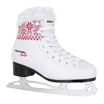 Klasická dámská brusle NORTH je určena pro rekreační a fashion bruslení. Kvalitní svršek brusle vyrobený z PVC cool resistence s povrchovou úpravou PEARL EFFECT diamantového vzhledu, kombinované s potiskem tradičního zimního motivu. V oblasti jazyku má brusle anatomickou bandáž. Příjemný pocit tepla je zajištěn výstelkou v imitaci kožešiny. Je příjemná na dotek a disponuje dobrými izolačními vlastnostmi. Na této brusli je použit zcela nový design nože TEMPISH WAVE, který je z nerezové oceli a leštěný.