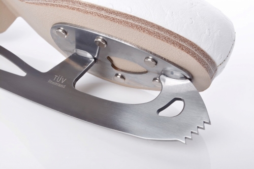 Dámské a dívčí lední brusle FINE klasické konstrukce pro rekreační, sportovní i výkonnostní bruslení. Bota brusle je vyrobena z odolného PVC, které má zajímavou povrchovou úpravu s plastickým reliefem. Vnější i vnitřní kožíšek na botě je velmi příjemný na dotek a předeším se postará o tepelný komfort, kdy udrží teplo v botě i za snížených teplot a delším pobytu na kluzišti, nebo přírodním ledu. Vnitřní anatomicky tvarovaná bandáž s pamětí na bázi latexu DB 120 fixuje pevně chodidlo v botě a přenáší bezchybně pohyb z chodidla na brusli. Anatomicky tvarovaná skořepina boty v oblasti kotníku se velmi příznivě projevuje při pohodlném ovládání brusle a díky ní můžete strávit na ledu dlouhé hodiny a kotníky budou "jako v bavlnce". Na této brusli je použit zcela nový design nože TEMPISH WAVE, který je z nerezové oceli a leštěný.