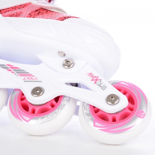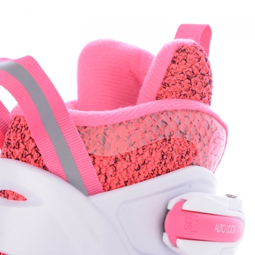 Skelet brusle je pružný až do -20°C. Brusle jsou určeny pro rekreační sport, začínající a pokročilé malé bruslaře. Měkká rychleschnoucí výstelka zajišťuje pohodlí dětské nohy. Vnitřní botička je dobře anatomicky tvarována, vnější plastový skelet drží pevně kotník. Tyto dětské brusle jsou velmi vhodné pro začínající bruslaře díky funkční konstrukci a anatomicky řešenému tvaru skeletu i vnitřní botičky. Brusle mají jednoduchý a pohodlný systém zvětšení velikosti tlačítkem na boční straně skeletu. Brusli lze nastavit na 4 velikosti.
