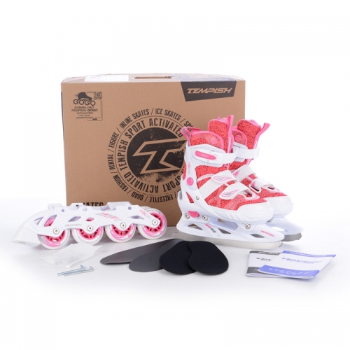 Dětské roztahovací brusle se speciální duální konstrukcí pro celoroční rekreační bruslení. Konstrukční systém umožňuje záměnu zimních bruslí za podvozek s kolečky. Jednoduchým povolením tří šroubů přeměníte zimní brusle na kolečkové inline brusle a naopak.