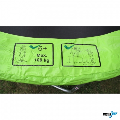 Nový model trampolíny se zdokonaleným uchycením ochranného límce s protahovacím okem abychom zamezili vytrhávání připevňovacích gumek. Speciální informativní, ale zároveň zábavný potisk tohoto límce.