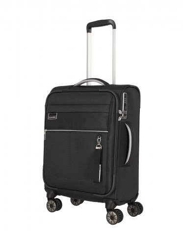 Elegantní textilní palubní kufr na čtyřech kolečkách s integrovaným TSA zámkem vyrobený z recyklovaného polyesteru.