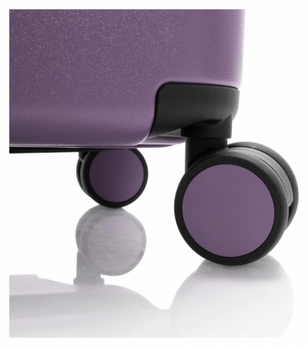 Skořepinový kufr na čtyřech kolečkách s integrovaným TSA zámkem a expandérem vyrobený z odolného polykarbonátu s jemnou texturou na povrchu.