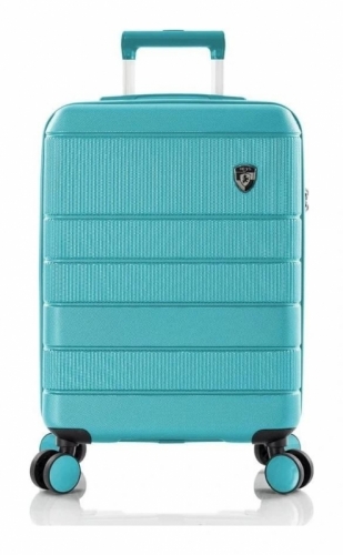 Skořepinový palubní kufr na čtyřech kolečkách s TSA zámkem vyrobený z odolného polykarbonátu s hrubou strukturou na povrchu.