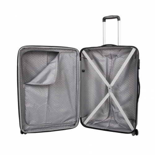 Moderní skořepinový kufr na čtyřech kolečkách vyrobený z robustního ABS plastu vybavený expandérem.