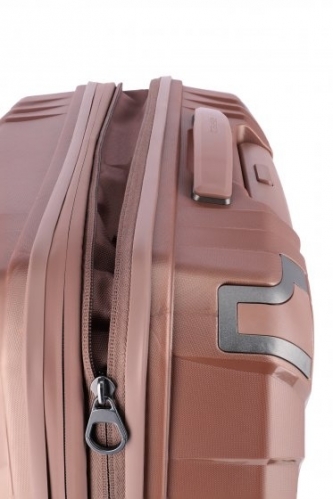 Luxusní skořepinový kufr na čtyřech kolečkách s voděodolným zipem, exkluzivním TSA zámkem a expandérem vyrobený z extrémně odolného polypropylenu.