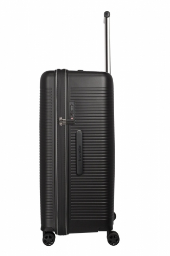 Velký skořepinový kufr na čtyřech kolečkách z nárazuvzdorného polypropylenu v inovativním designu s hlubší zadní částí, vybavený integrovaným TSA zámkem.