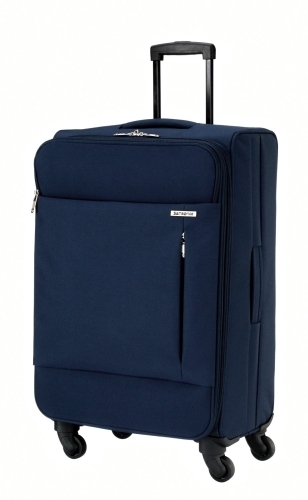 Cestovní kufr na čtyřech kolečkách je vyroben z textilního materiálu. Má vysouvací trolej + dvě ruční madla pro snadnou manipulaci. Z přední strany má kapsu na zip, uvnitř je vybaven síťovou přepážkou na zip a křížovým upínáním pro lepší fixaci obsahu. Velkou výhodou je jeho velikost - možno vzít na palubu letadla.