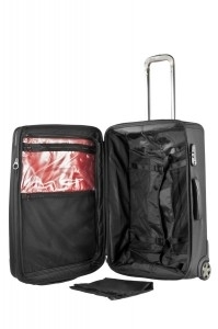Velmi praktický kufr na dvou kolečkách pro snadnou manipulaci, s výsuvnou rukojetí. V zavazadlové části je opatřen křížovými pružnými upínacími pásy, kapsou na zip a průsvitnou kapsou (PVC). V další samostatné části je prostor na dokumenty a příslušenství.