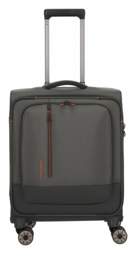 Čtyřkolečkový textilní palubní kufr z recyklovaného polyesteru s vodoodpudivým dnem, TSA zámkem, kapsou na notebook a integrovanou jmenovkou.