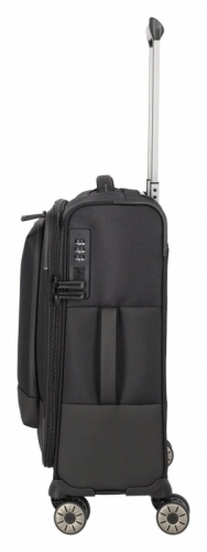 Kabinový kufr Travelite Crosslite 5.0 S s nadčasovým vzhledem a praktickou výbavou hravě splní požadavky nejnáročnějších cestovatelů na zavazadlo vhodné na víkendové pobyty. Lehký elegantní kufřík z pevného recyklovaného polyesteru je opatřen robustním zipem, dnem z vodoodpudivého materiálu, integrovanou jmenovkou a integrovaným TSA zámkem s velkými číslicemi a Braillovým písmem, který zabezpečí věci v době, kdy nemáte zavazadlo pod dozorem. Luxusní interiér s přihrádkou na košile, kompresními popruhy, síťovanou kapsou na zip, malou kapsičkou na tracker a dvěma vyjímatelnými organizéry na oblečení a boty maximálně zjednoduší balení i přepravu věcí. Velkou předností je rovněž integrovaná přihrádka na notebook/tablet (do velikosti 15,6'') ve velké přední kapse a menší kapsa na zip na předním panelu. Bezproblémové přesuny a pohodlnou manipulaci zajistí otočná kolečka, madla na přenášení a popruh na zadní straně, díky němuž můžete kufr snadno nasadit a vézt na výsuvném madle dalšího cestovního kufru.