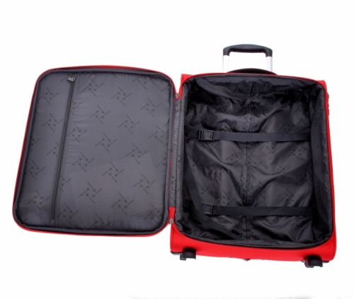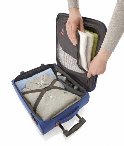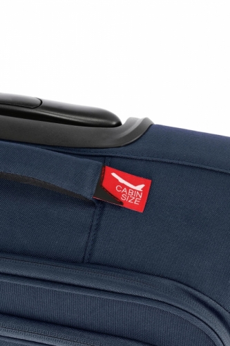 Textilní palubní kufr na dvou kolečkách v nadčasovém designu.